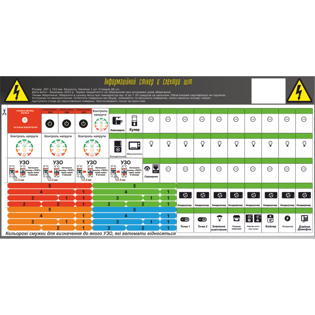 Наклейка на електрощит комерційного приміщення 60 символів Майстерня Онищенко
